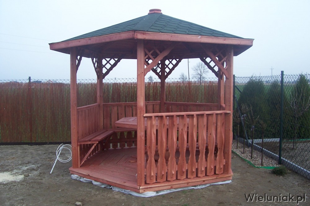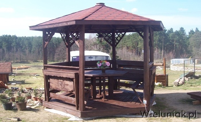 - 5 ławek mocowanych do altany,