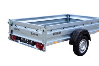 Przyczepy towarowe Zasław to nowoczesna linia przyczep samochodowych wykonanych z najlepszych dostępnych na polskim rynku materiałów. Produkty tej kategorii charakteryzuje m.in.: nowoczesny design burt walcowanych na zimno, wytrzymałe zaczepy burtowe z kompensacją oraz dyszel prowadzony od osi dla większej wytrzymałości konstrukcji. Wszystkie elementy ramy cynkowane są ogniowo, co gwarantuje ich trwałość i dużą odporność na korozję. Model 235SU posiada dodadkowko: oś o DMC 750kg, uchylną skrzynię i otwieraną przednią burtę oraz system szybkiego demontażu burt. Wyposażony jest także w: koło podporowe z obejmą oraz uchwyty mocujące towar jak również ramkę tablicy rejestracyjnej.